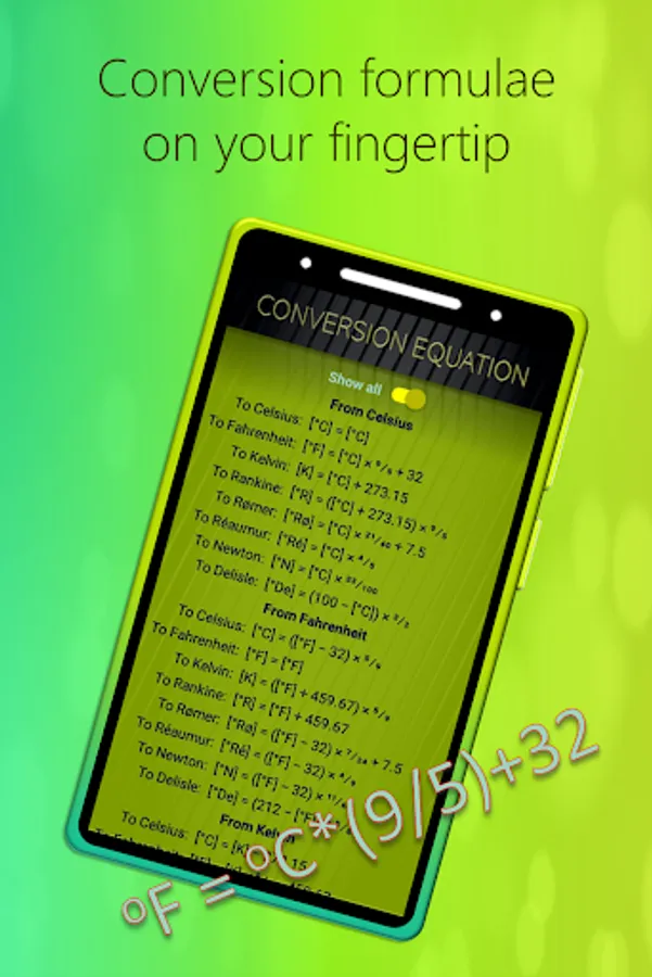 • Single click and view option to see the temperature conversion equations from the input temperature unit selected to all other units or view conversion from all units to all other temperature units.