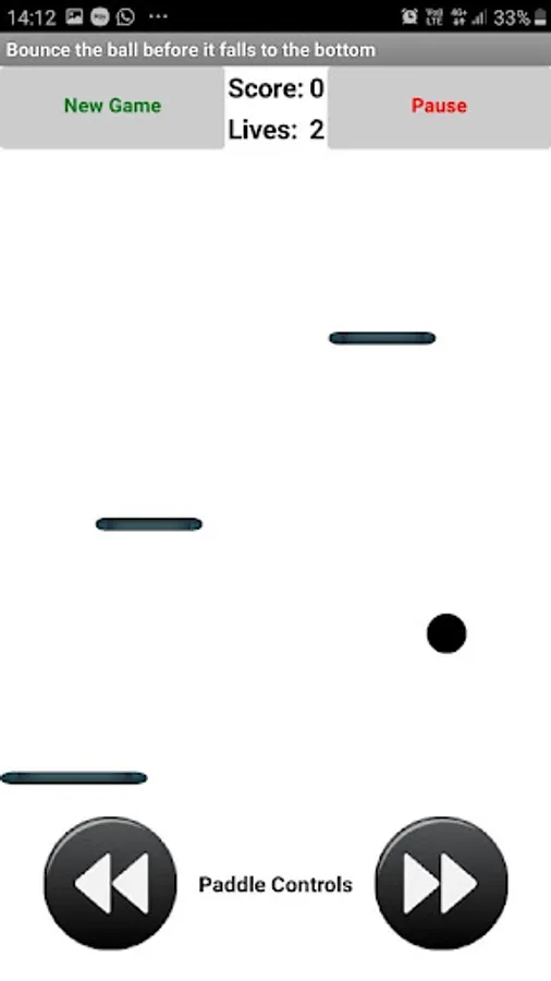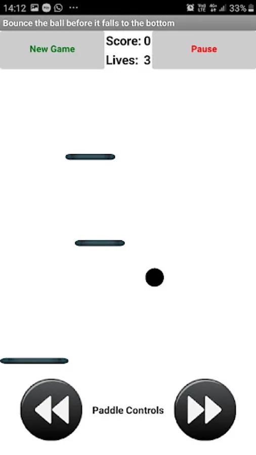 You have 3 lives- so in case you miss the ball a couple of times, you can still continue on your quest of raking up points. If you need a break and want to continue where you left off, simply press the "Pause" button on the top of the screen... when you are ready to continue, press "Continue" and continue the game from where you left off.