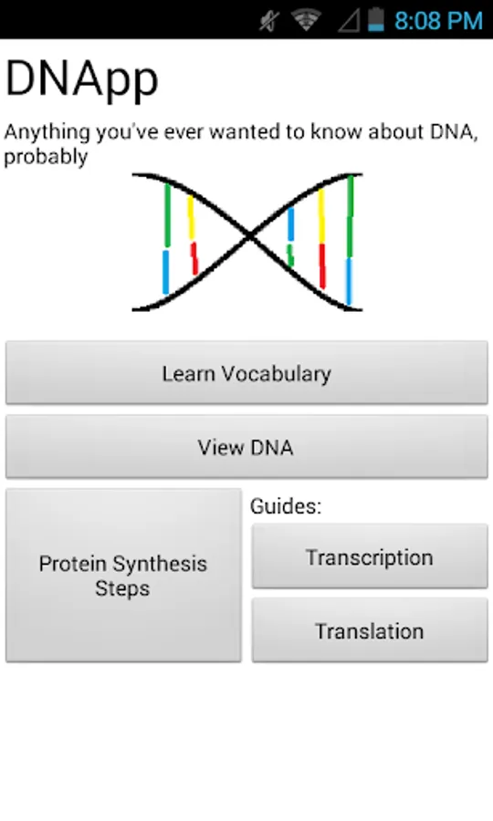 If you answered yes to any or all of the above, look no further! The DNApp was designed and written by students at Energy Institute High School as part of its Project-Based Learning curriculum. To answer the driving question, "How can we create an app to teach Biology students about DNA & genetics?" we turned to MIT App Inventor and worked to create an app that would do just that.