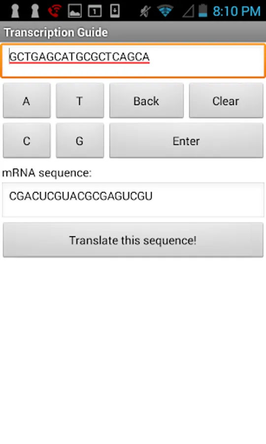 - Calculators for transcription and translation (the two steps of Protein Synthesis) so that you don't have to decipher an mRNA codon chart yourself! Because that's boring.