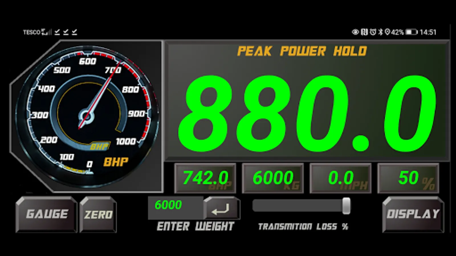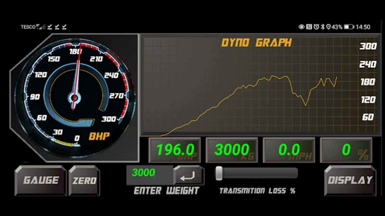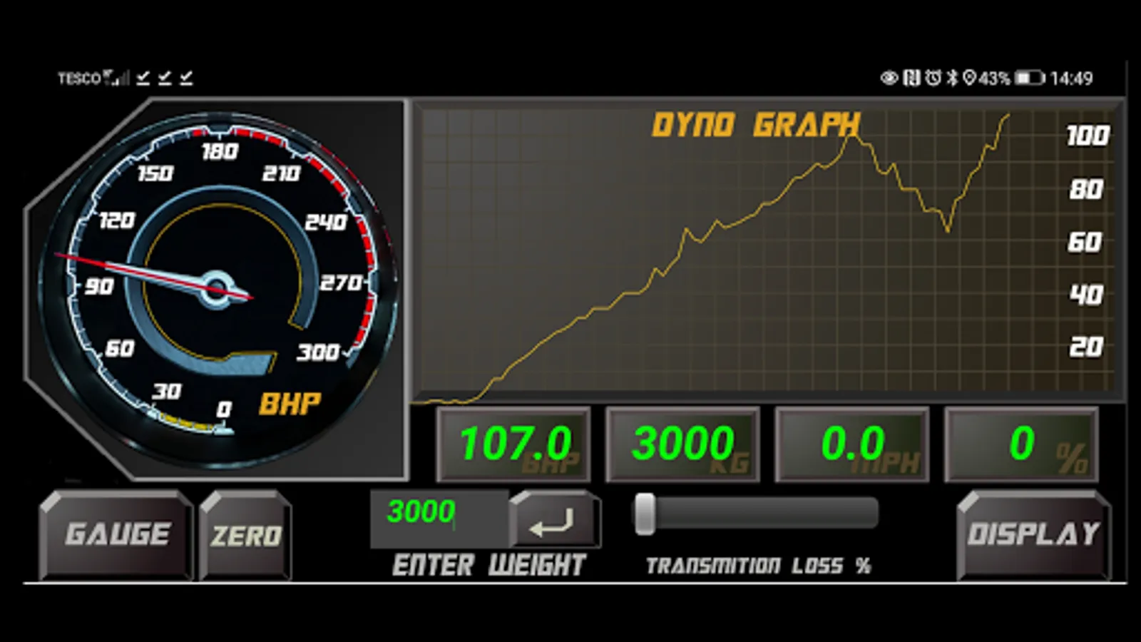 Simply enter your vehicle weight and transmission loss % and smart dyno uses accelerometer data and GPS to calculate your cars power output and display it in real time.