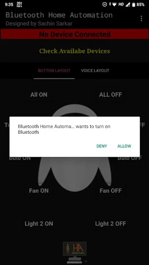 An app which allows to control your home electrical appliances such as bulb, fan, tubelight, television etc. using your mobile Bluetooth.
