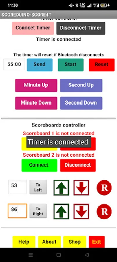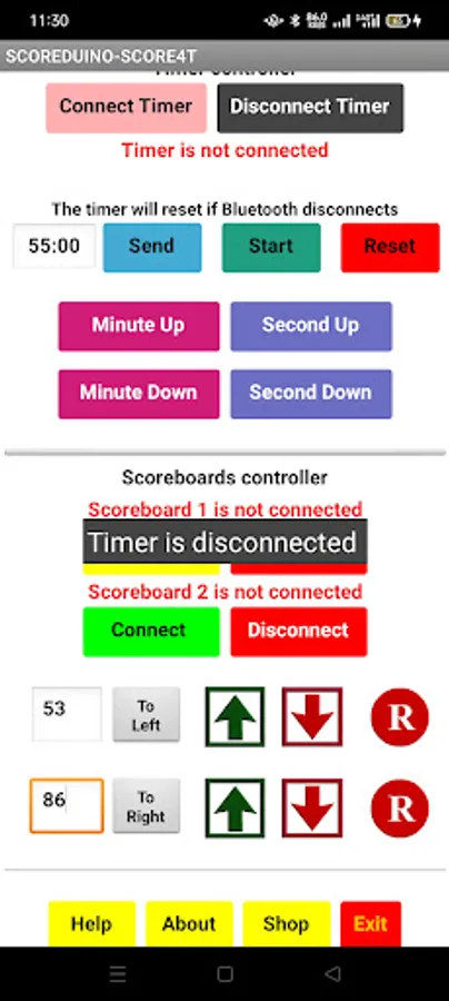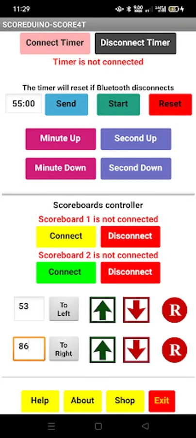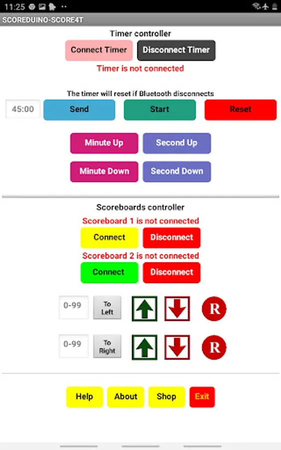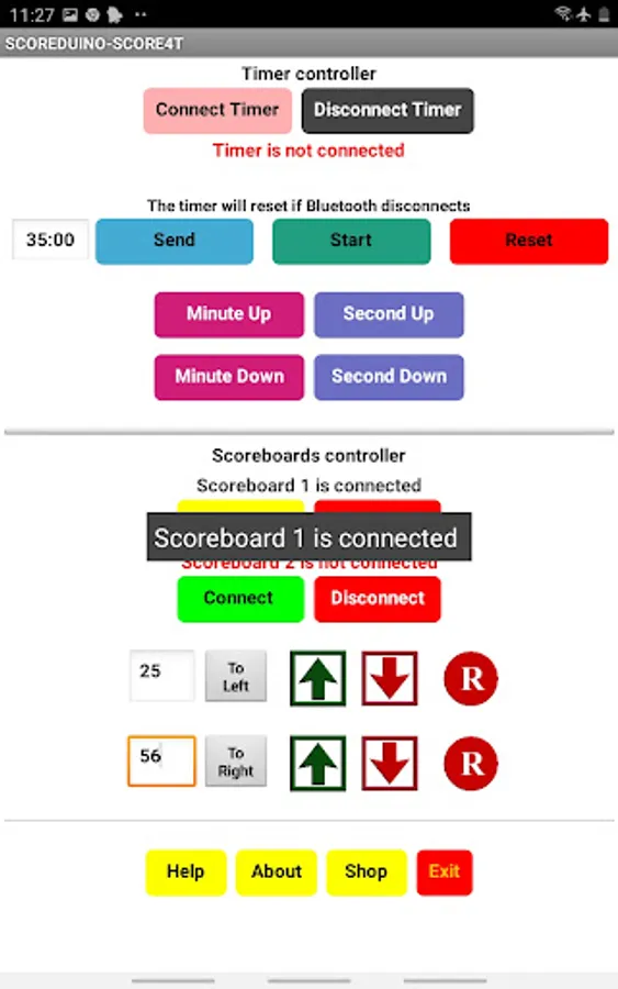 'SCOREDUINO SCORE4T' app is dedicated to controlling: