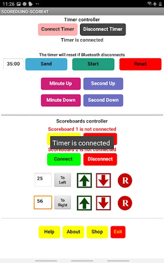 2. Connect to two SCORE4 scoreboards and send the same scores simultaneously across both scoreboards.