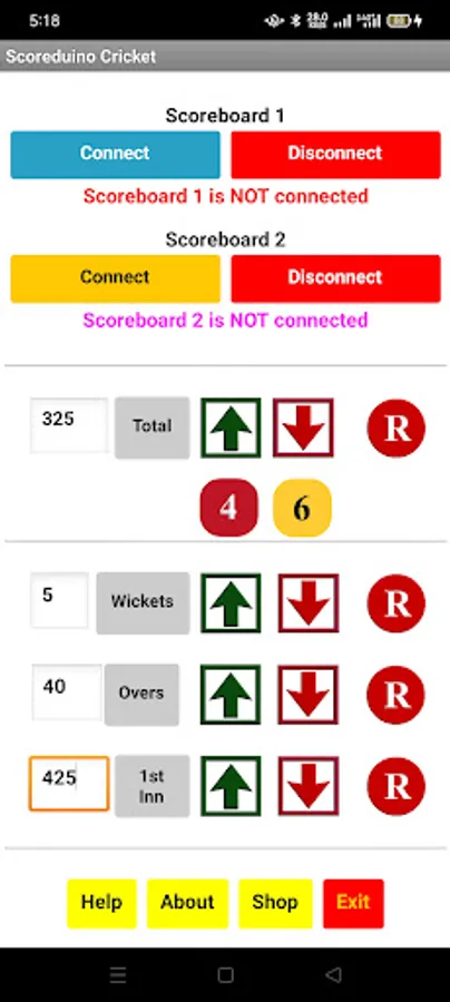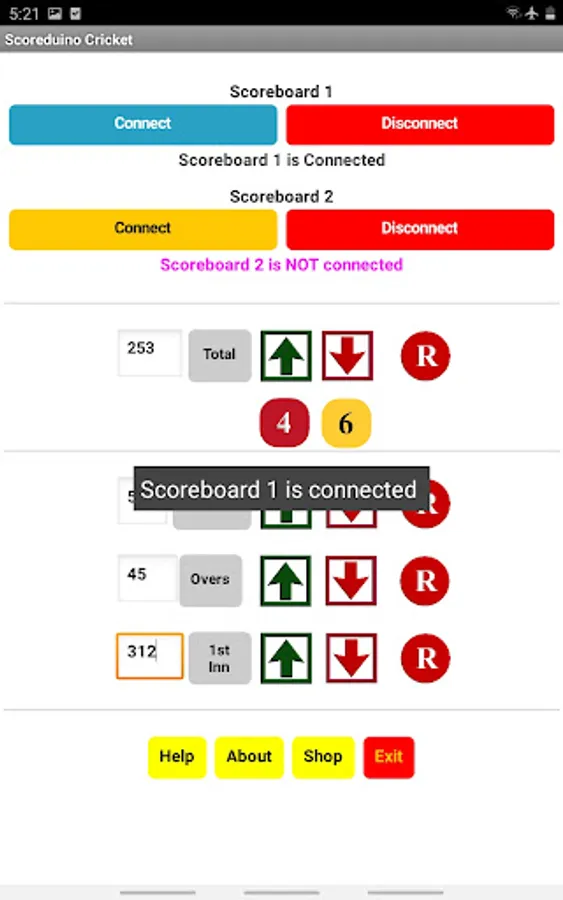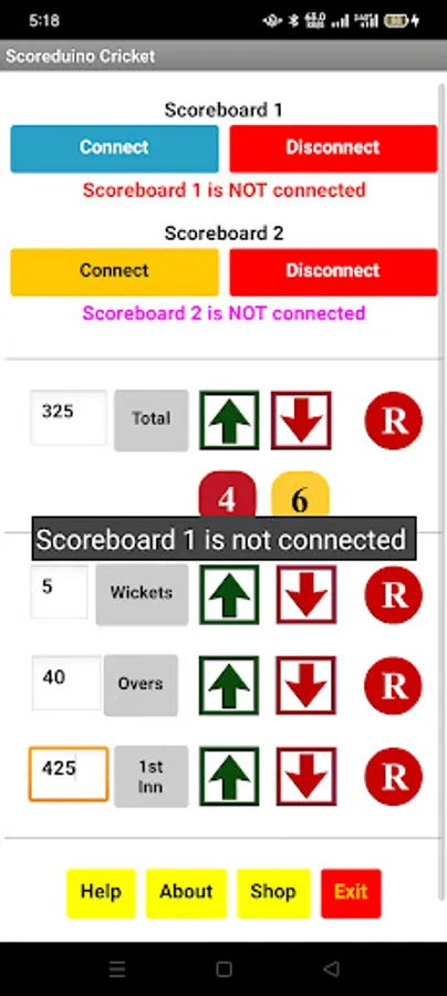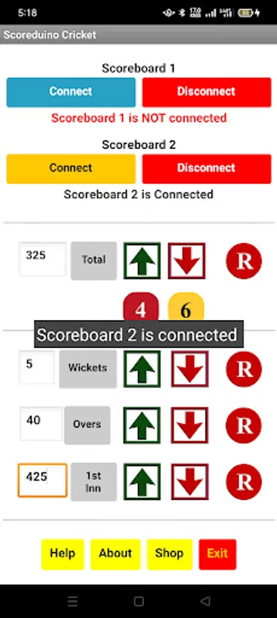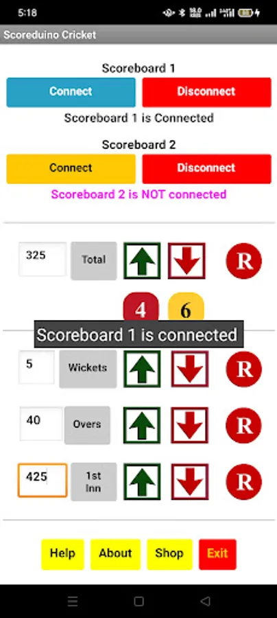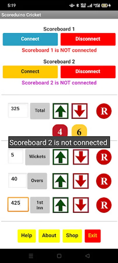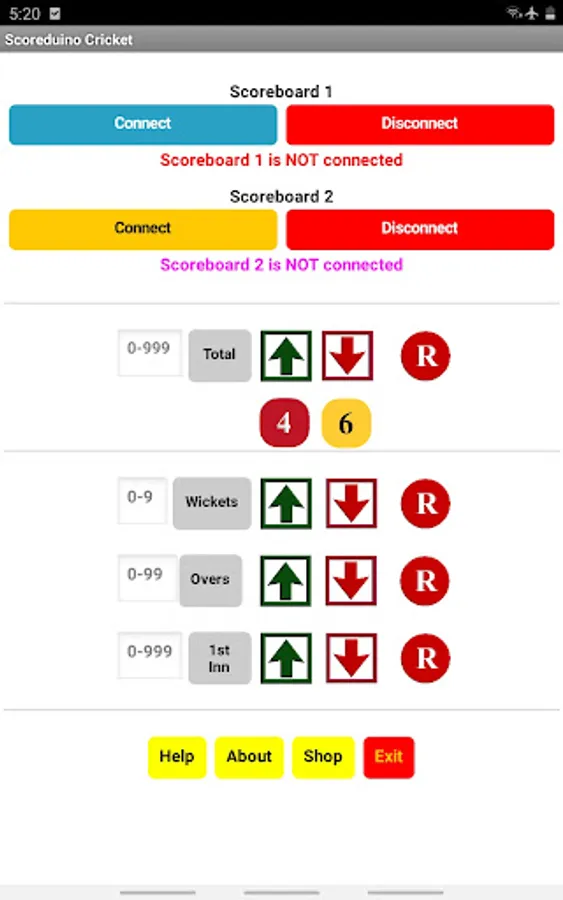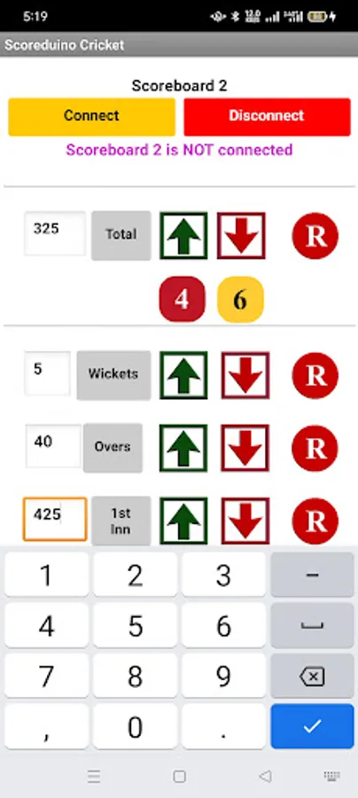 Step 8: Open the app and connect it to the scoreboard and send numbers to TOTAL, WICKETS, OVERS, and TARGET displays