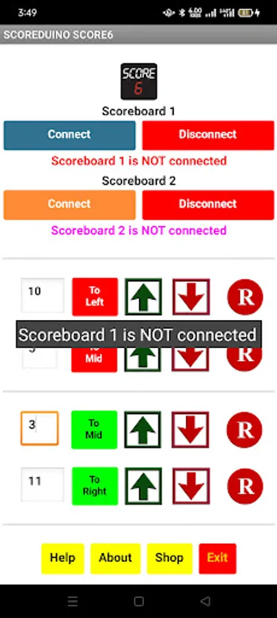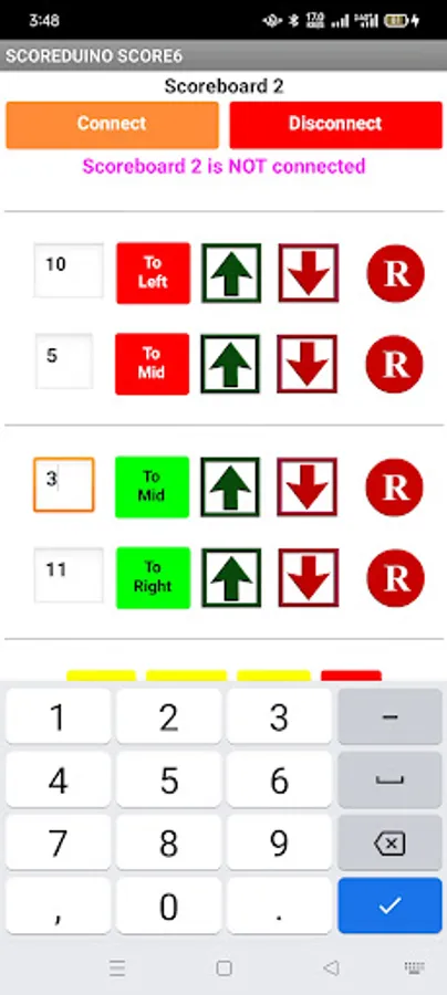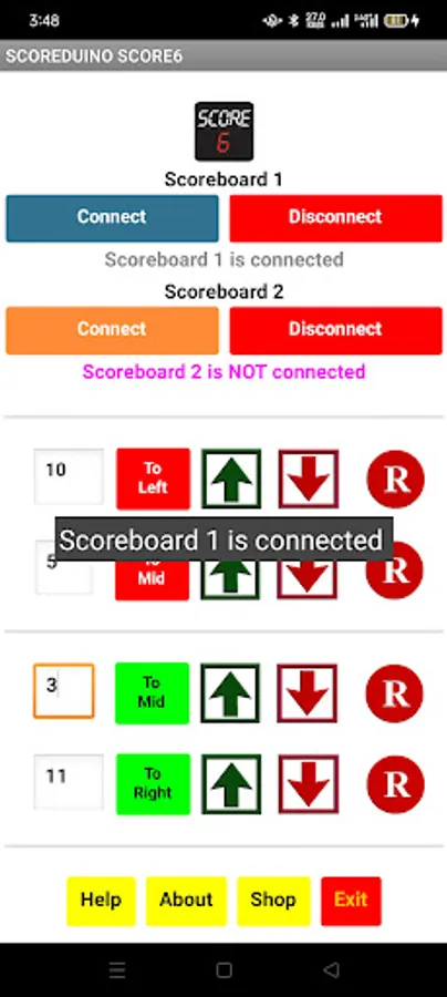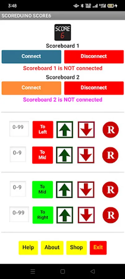 Step 4: Open the app and send specific scores or up/down count commands to the scoreboards.