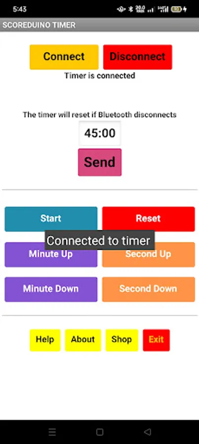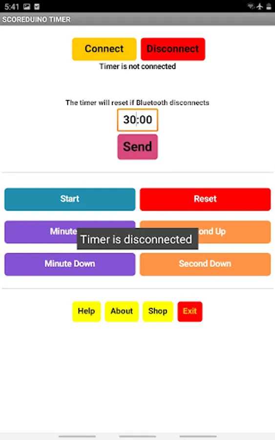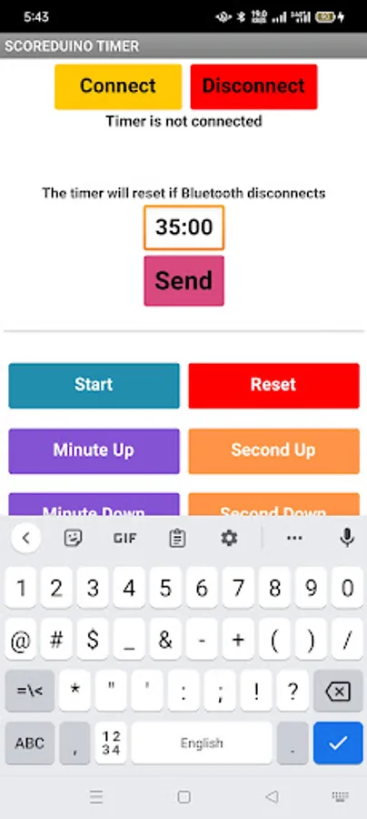 'SCOREDUINO TIMER' app is dedicated to controlling a 4 digits digital Timer.