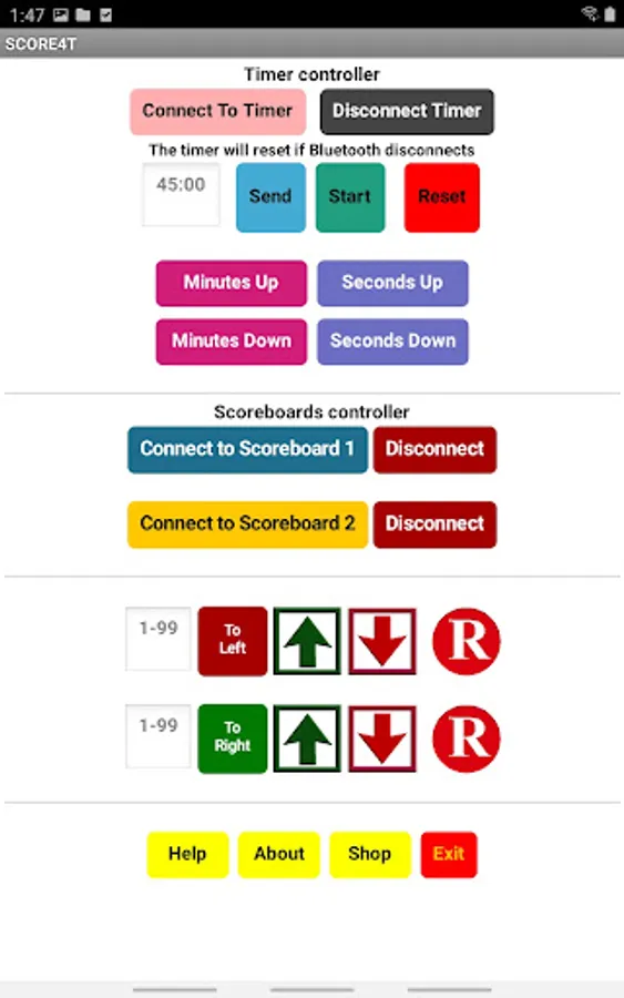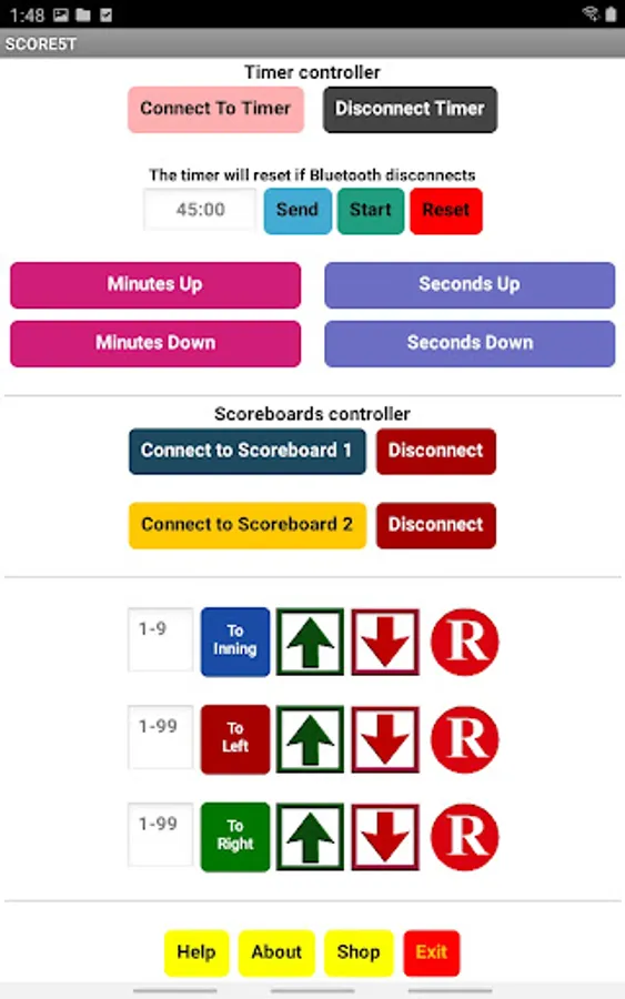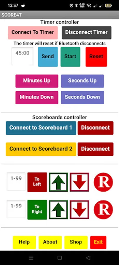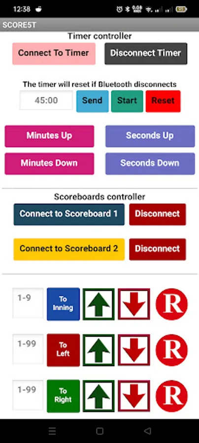 'SCOREDUINO CONTROLLER' app is a comprehensive version of different scoreboard controller apps. This one app can be used to control SCORE3, SCORE4, SCORE5, SCORE6 and SCOREC scoreboards.