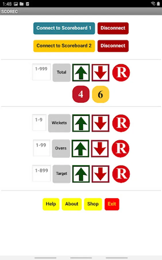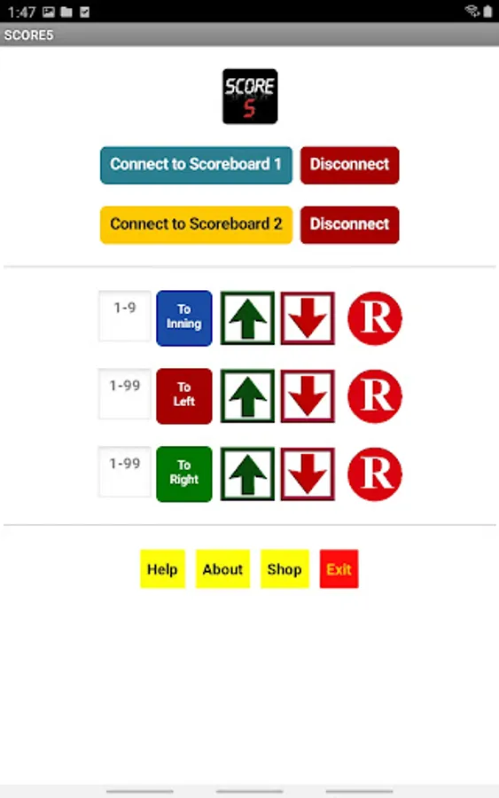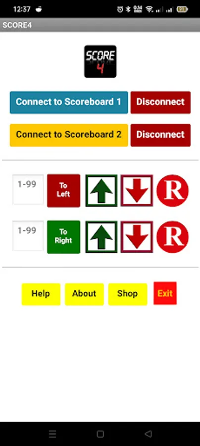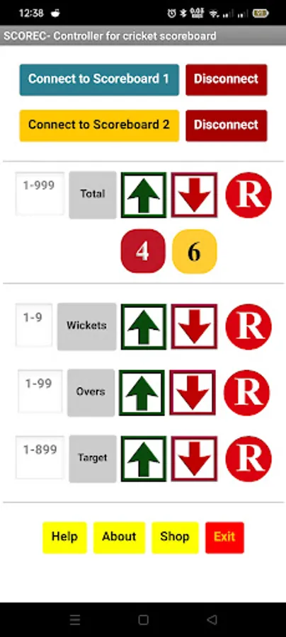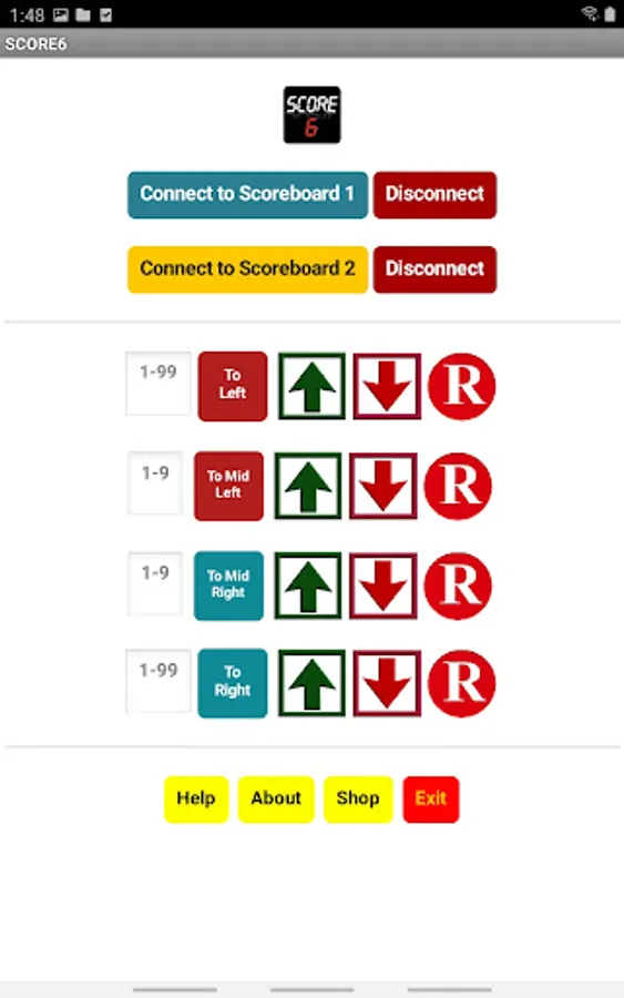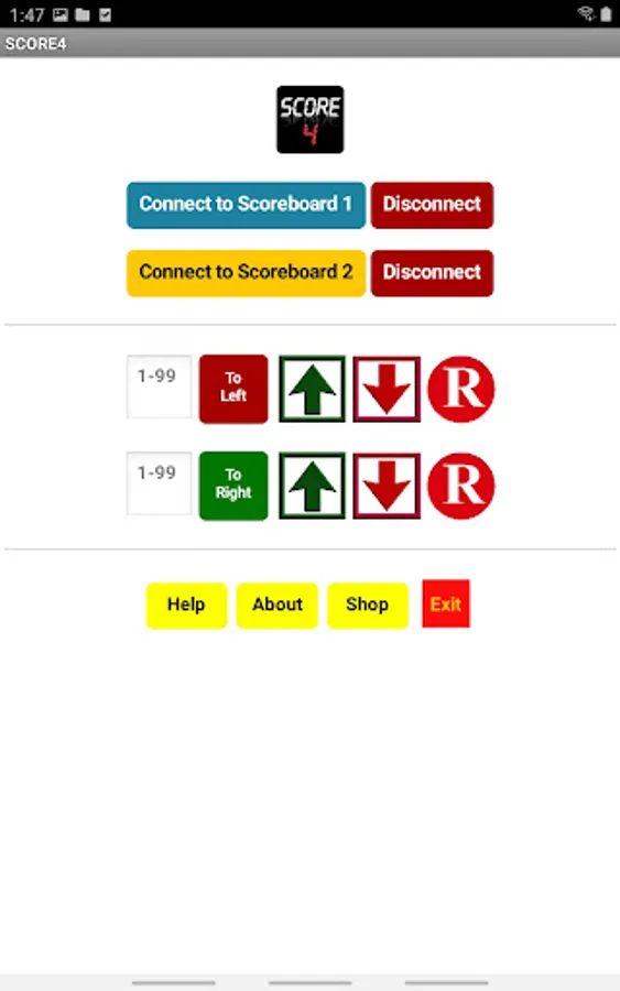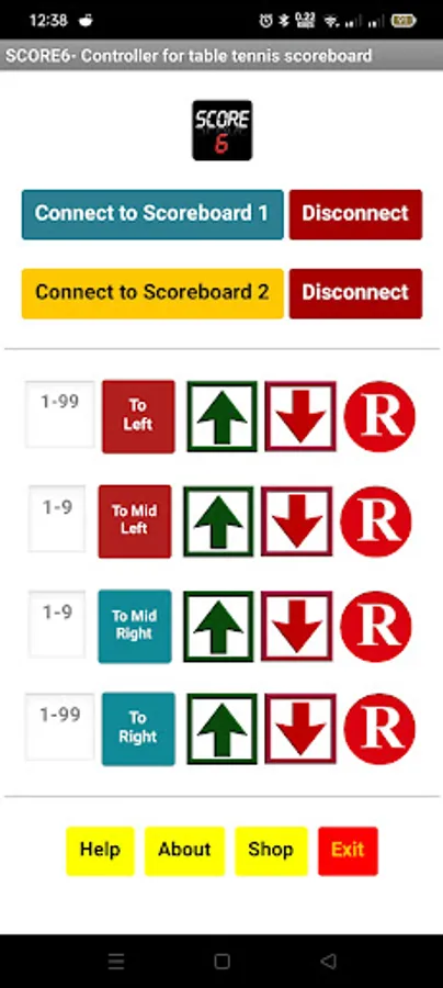 Step 4: Open the app, open the right module, for example, SCORE4 or SCORE5 or SCORE6 and send specific scores or up/down count commands to the scoreboards.