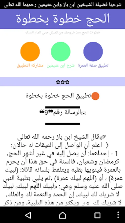 This application includes an audio explanation of Sheikh Ibn 'God's mercy for all the rituals of Hajj, as well as explain Shaykh Ibn Baaz God's mercy in the 30 message Mkhtoh step with the possibility of the participation of these messages coordinated and beautiful.