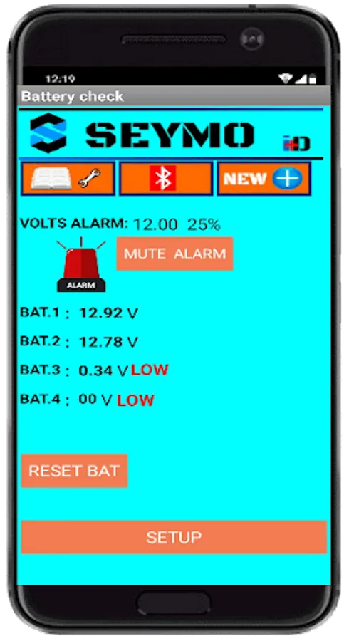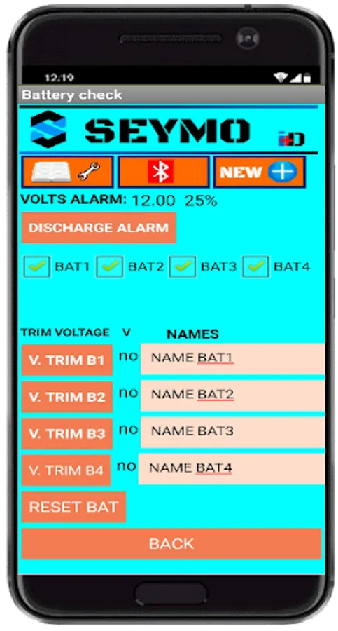 Control up to 4 groups of batteries via Bluetooth with the Seymo App only available for Android.