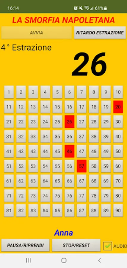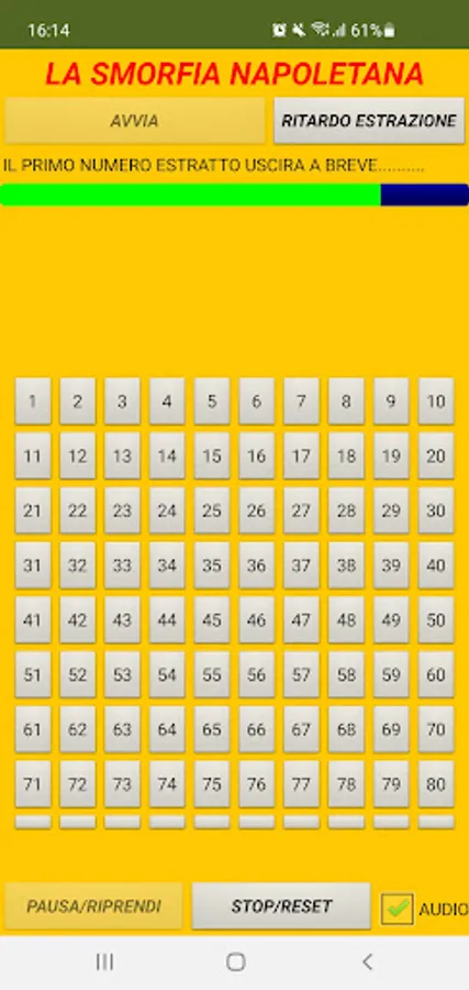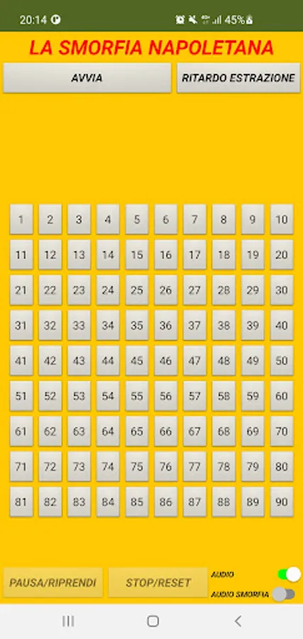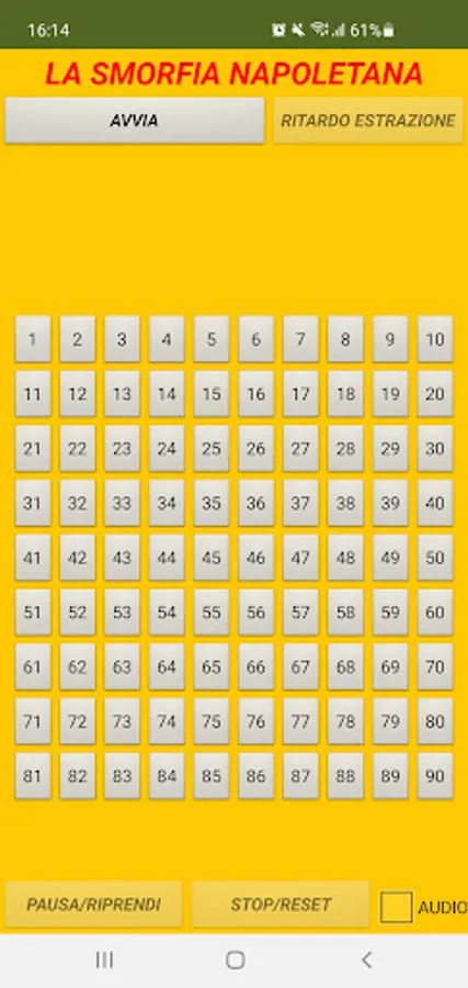 This is an application that emits random numbers from 1 to 90 with relative wording (written and spoken) of the Neapolitan Smorfia. Functional as a bingo board.