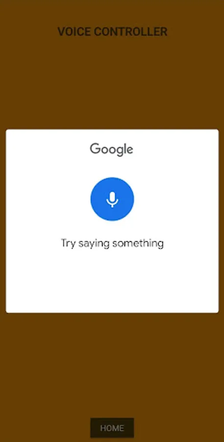 The Voice Controller has a "Command" button. It understands 5 commands, viz. Forward, Backward, Left, Right and Stop. When a command is recognized, the app transmits a specific character corresponding to that command using bluetooth serial (UART) communication protocol.