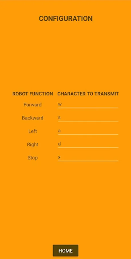 3. "Configuration" menu for transmitting custom characters to the robot.