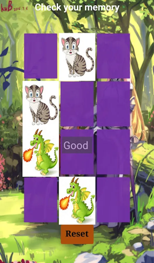 A 3-step easy-medium-difficult game with hidden images in a relationship should find each pair of images by the end
