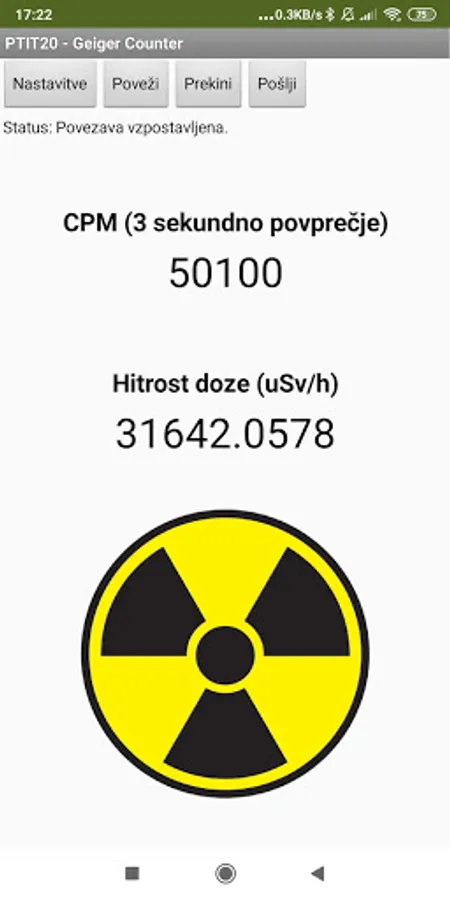 Application for access to data from the Geiger counter, which we made at the workshop From electrons to stars at the Faculty of Electrical Engineering, University of Ljubljana.
