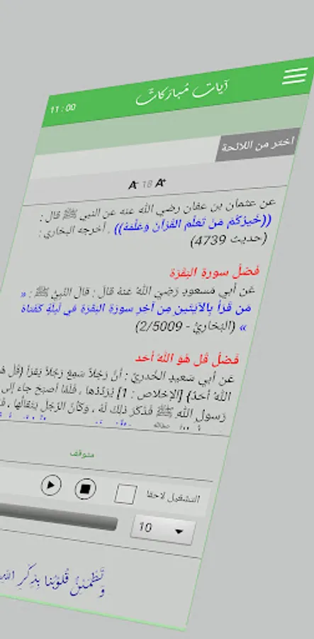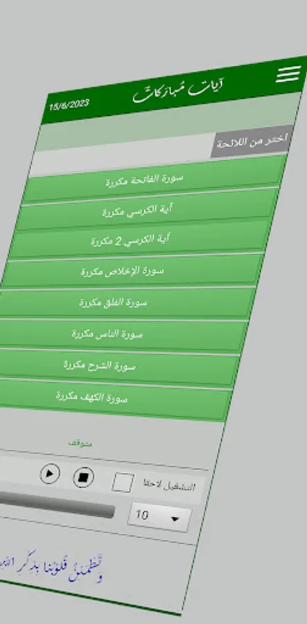 Ayat Mubarakat (Blessed Verses) is an application that contains a group of blessed Quranic verses and surahs that can be listened to in order to obtain its blessing.