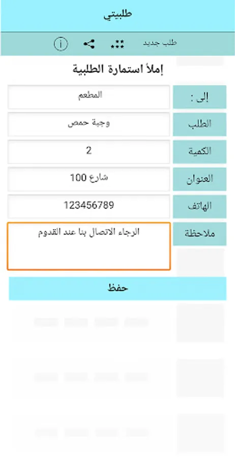 My order is an application that allows the user to fill in the order details (for any type of order), and it arranges the order and coordinates it in the required manner, and therefore the user can send the order through any "communication site" to the place to be sent to