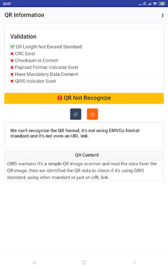 It's a simple QR image scanner and read the data from the QR image, then we identified the QR data to check if it's using QRIS standard, using other standard or just an URL link.