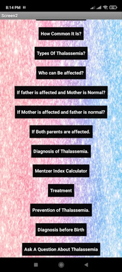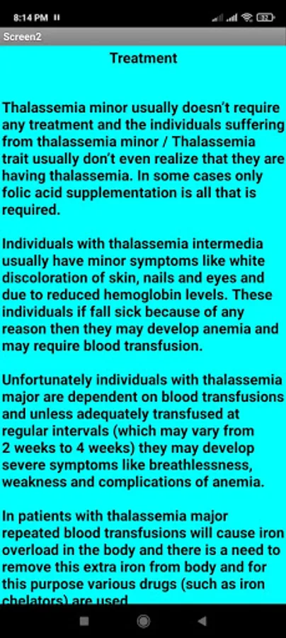 Thalassemia is an autosomal recessive disease and if any of the parents carries thalassemia gene then the baby may also get affected. It is therefor important to know basics of this disease. This app will help you understand basics of transmission and how much likely is the baby to get affected. Moreover this app also discuss in brief about chances of transmission and availability of treatment options. Also this app gives you information about Mentzer index which may be helpful in diagnosis of thalassemia.