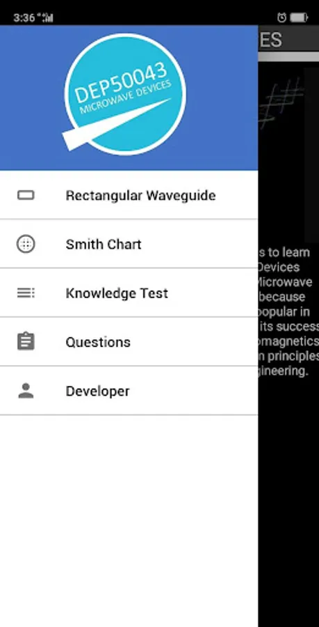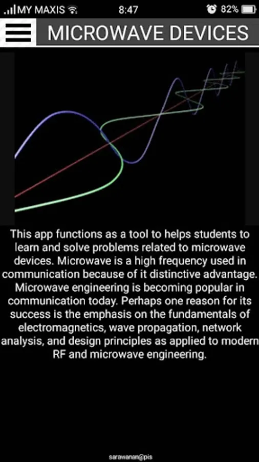 This application is designed to solve transmission line problem for waveguide and Smith Chart for students taking up Microwave Devices course. It can guide user to determine transmission line problems or compute unknown parameters to determine outcomes.