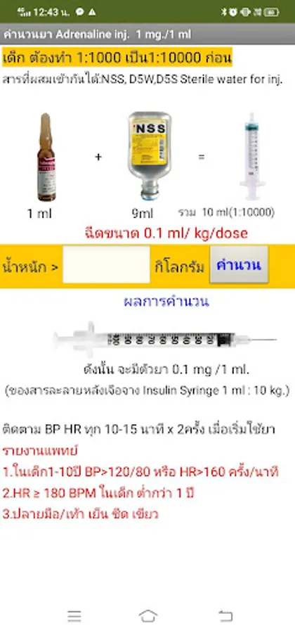 It calculates the amount of use, dosage for adults and children, the use of emergency medicine. Life-saving medicine box in the hospital