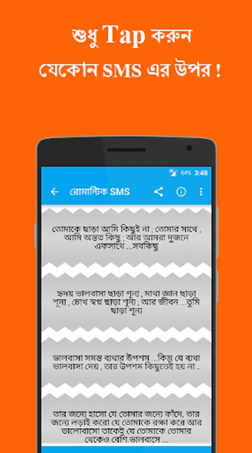 Bengali SMS is a Bengali SMS collection app. It includes Both Funny & General SMS in Bengali Font.