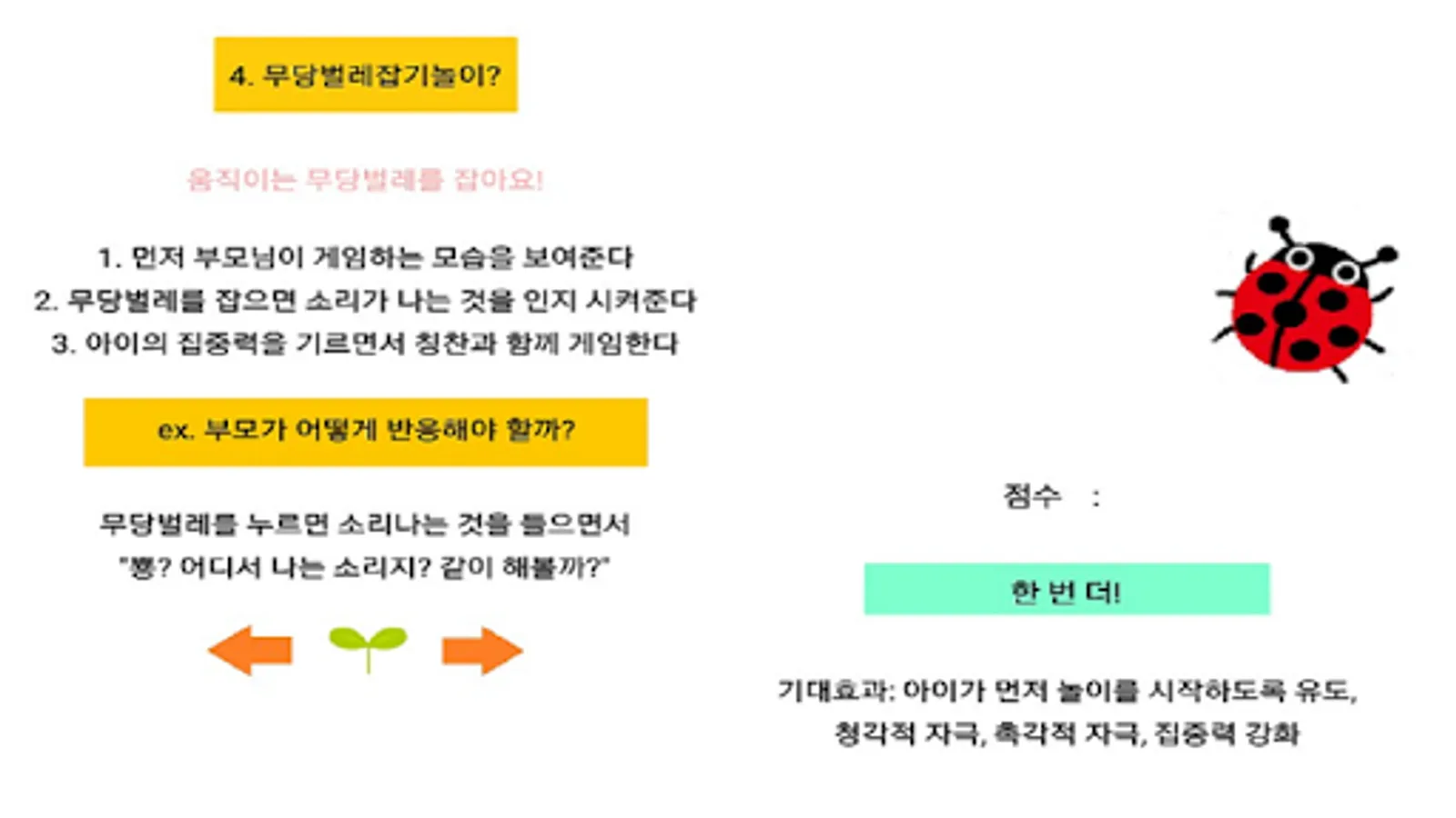 만0-3세 아동의 부모들에게 아동과 상호작용하는 방법을 동물그림카드놀이, 얼굴놀이, 무당벌레 잡기 놀이 등을 통해 소개합니다.