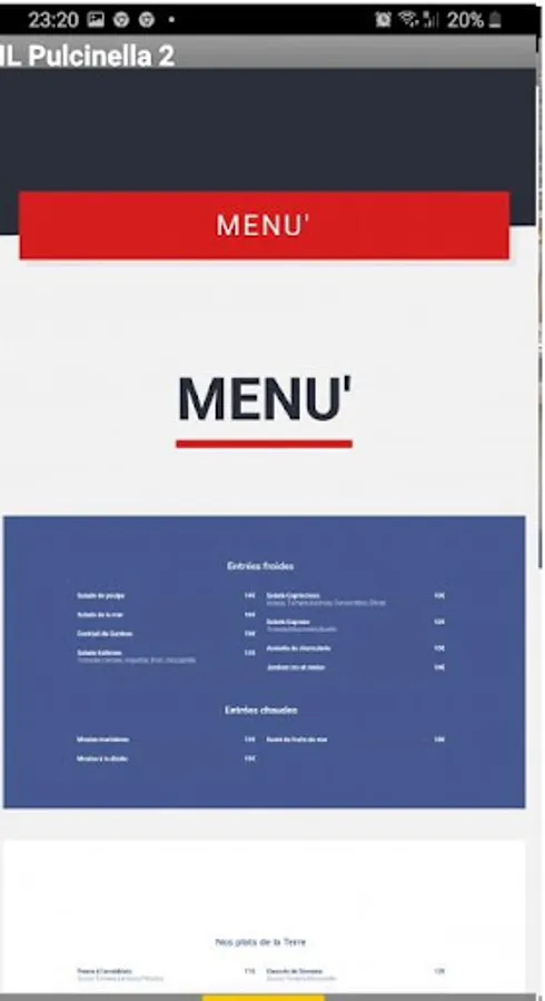 follow our site and read the menus of the restaurant IL PULCINELLA 2 in S.Florent Corse