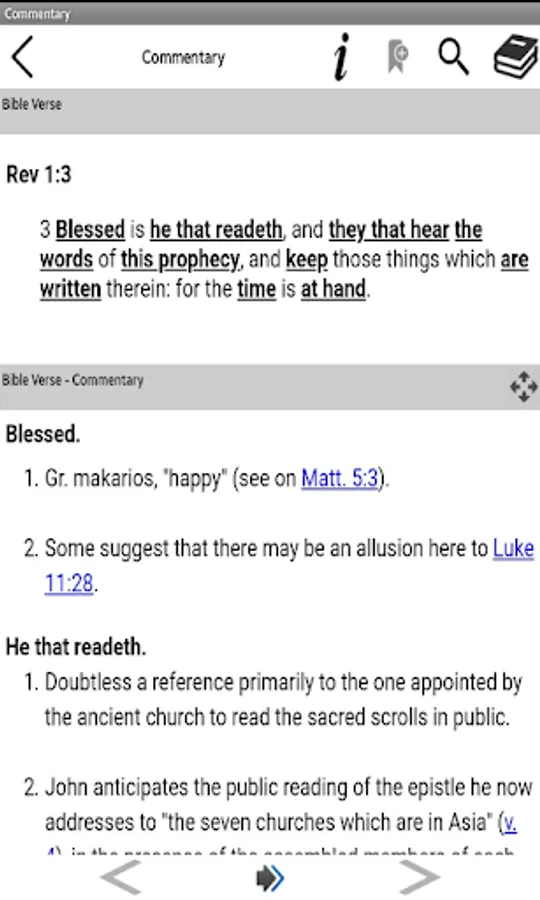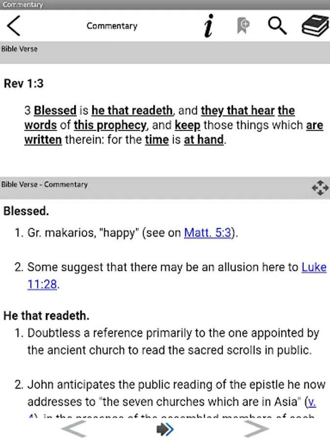 *The app was designed to allow the user to lookup scripture and other references within the app, thus adding the convenience of focusing on the verse being studied without having to switch to another app to lookup these references.