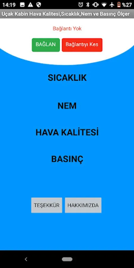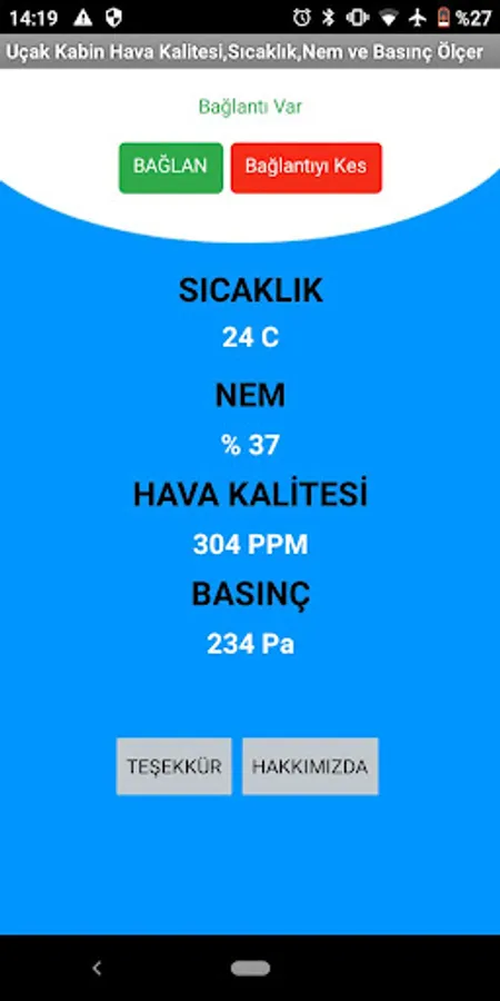 Application that measures cabin pressure, temperature, humidity and air quality values. You can see the data received from the sensor via Bluetooth on the application.