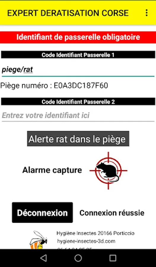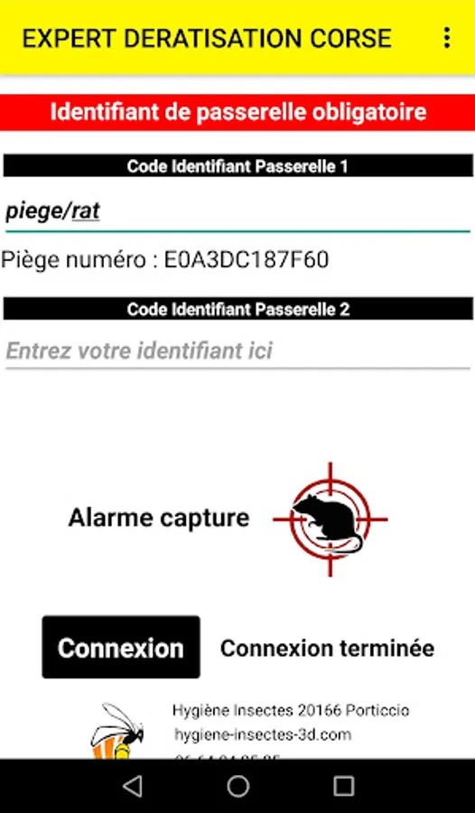 Deratization application to be warned when using Insect Hygiene connected catch traps. Thanks to your mobile, you are informed at all times of one or more of your triggered traps. An alarm signal to warn you of the presence of a rodent captured in the trap is displayed. An identification number per trap makes it possible to intervene quickly on the treated area and no longer waste time checking the other traps. Saving time, it saves you from carrying out unnecessary interventions if there are no rodents present. This allows you to also offer a better quality service with an ecological impact so as not to systematically use biocidal products. The use is simple, you connect using the WPS function on the wifi network and the traps will automatically be in service. Complete rat trap to install in your establishment for 24-hour online monitoring.