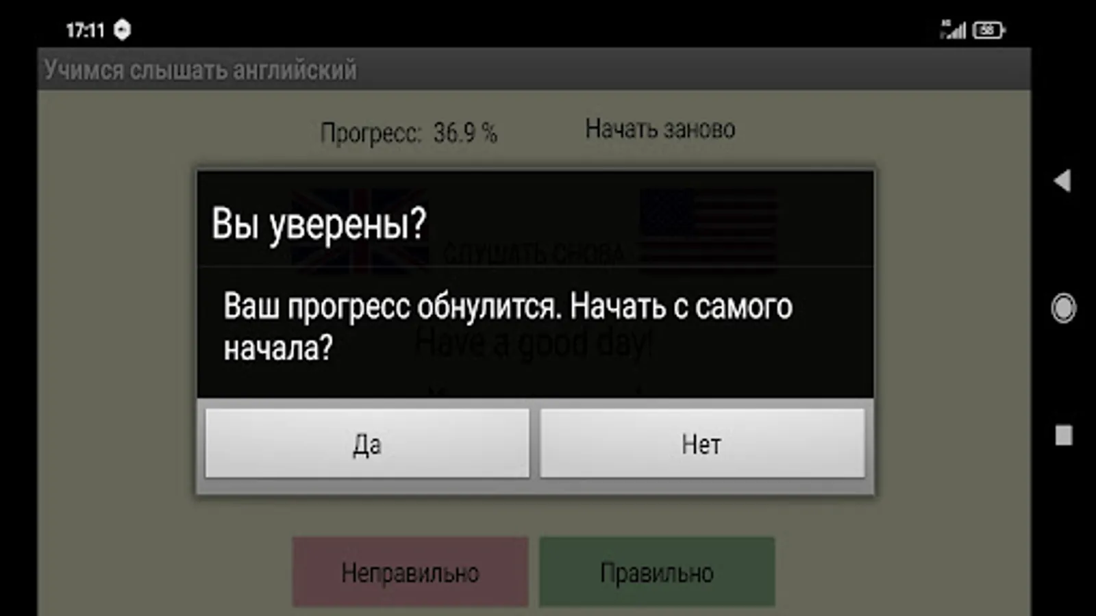 Having heard the phrase, you can check if you understood it by clicking on the "Show answer" button. You will see the sounded phrase and its translation into Russian on the phone screen, and you will be able to understand whether you heard it correctly.