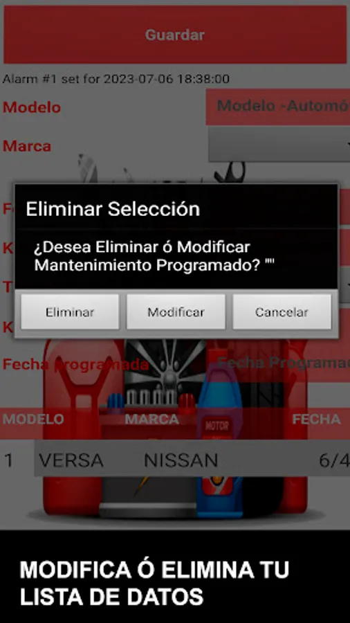 You will be able to know the next intervention of the maintenance of your vehicle. You will edit or delete what you have on your list.
