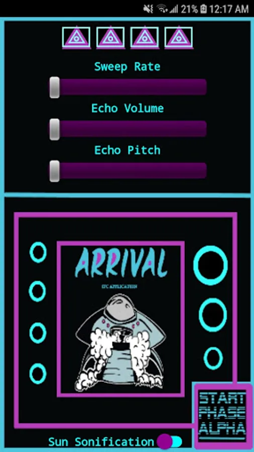 Arrival isn't your average spirit box. It sound bank uses sounds recorded in space, sumerian language, and other unusual fragments/frequencies. When activated the sound bank randomly scans through these frequencies to create an odd mixture of sound for spirit manipulation to occur over. There are no actual words in the banks, but 1 second fragments of them. There is an echo mode which utilizes your own phones microphone so that you could even add your own voice into the mix if you desire. The Sun Sunofication switch can be turned on to add actual frequencies from the Sun through your phones speakers. This app can also be used with external speakers, spirit speakers, etc. I also recommend recording the sessions and reviewing them to see what responses you got. Arrival uses the sounds of space, an ancient language, and our own voice to break through to the other side.