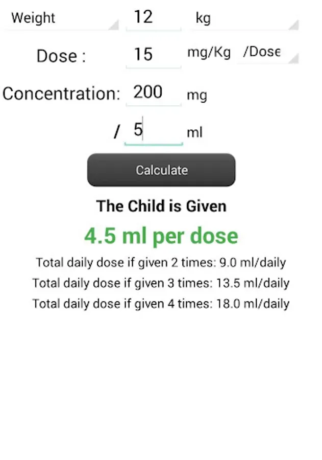 A handy calculator for various doses of drugs for pediatricians with a lot of abilities: