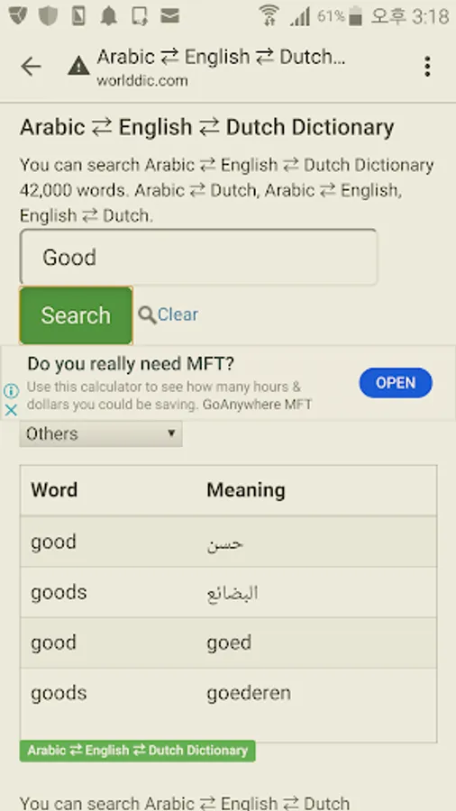 English to Arabic, Dutch Dictionary. This is Arabic ⇄ English ⇄ Dutch Dictionary. 42,000 words. There are Arabic ⇄ English ⇄ Dutch 42,000 words(vocabulary).