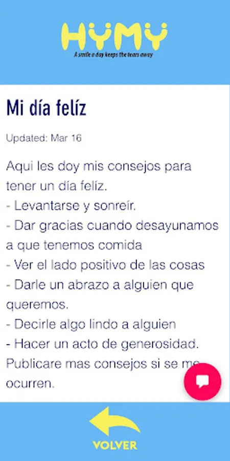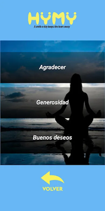 HYMY is like a companion who will help you make any situation easier, improving the processes of interaction with your environment, using 4 main sections: meditation, games, community and your follow-up.