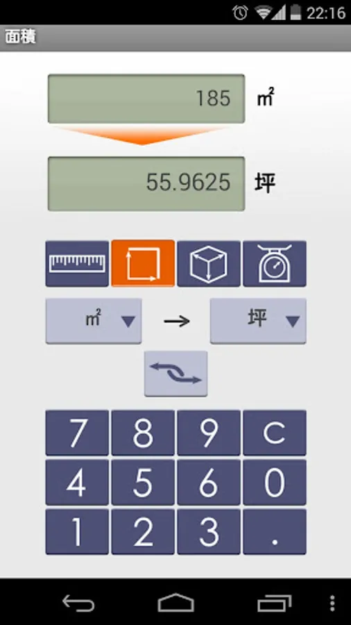 Area: square kilometers, ha, a, square meters, ㎠, mm2, ac, yd², ft², in², town, anti-, ridge, basis