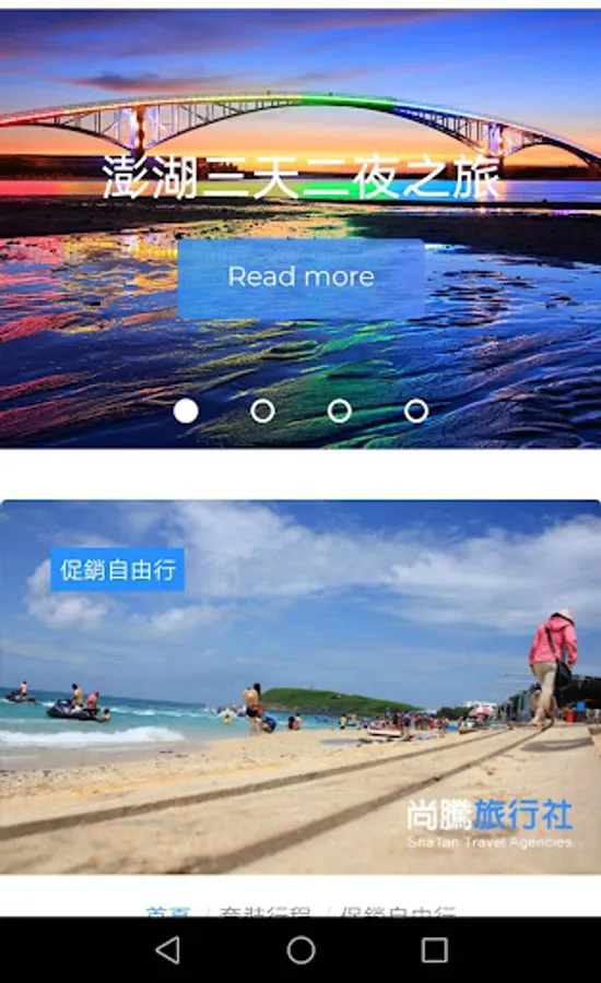 澎湖旅遊先驅,各界先進及眾多旅客們對尚騰假期的愛護與支持下, 尚騰假期至始至終秉持著誠信的態度,對於旅遊中的內容,並配合旅遊巴士,完全的掌握在對外旅遊的團體資訊,在於任何行程方面安排,讓服務品質貫徹到底。讓旅遊更豐富精彩是我們的目標。