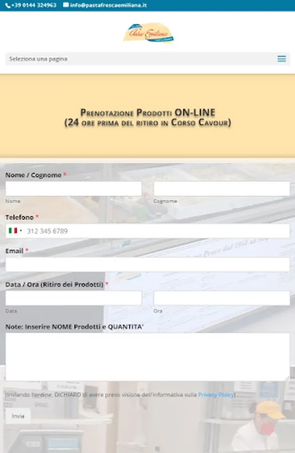 To speed up the collection of the products at the Acqui Terme sales point in Corso Cavour, without queuing for several minutes, you must fill in the form in all its parts and send it (to optimize the production process you must send it at least 24 hours before of picking up the order).