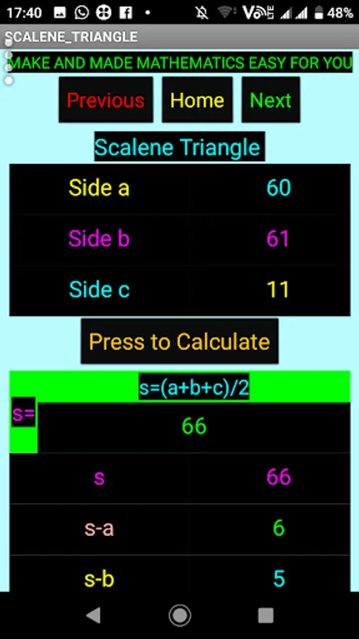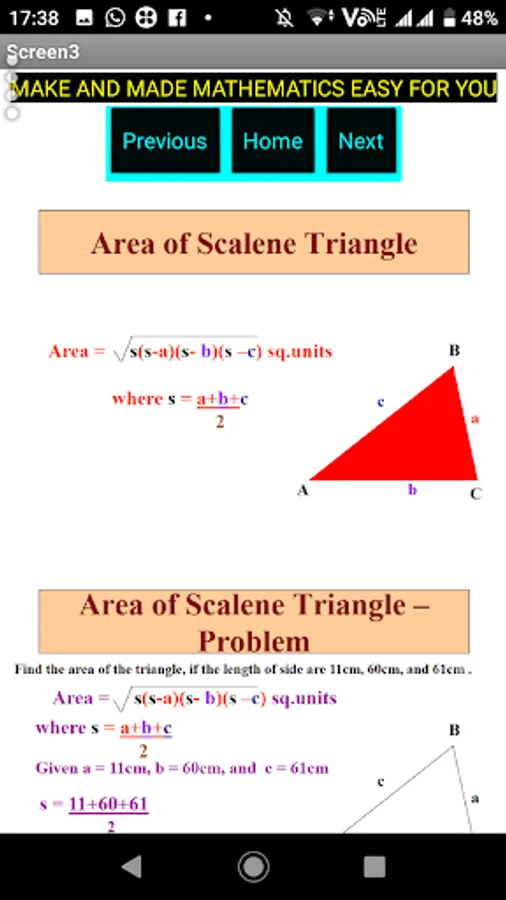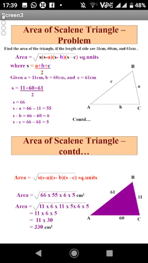 To find the area of triangle for scalene type triangles (i.e all sides are not equal. This application is very useful for upper primary and secondary classes.