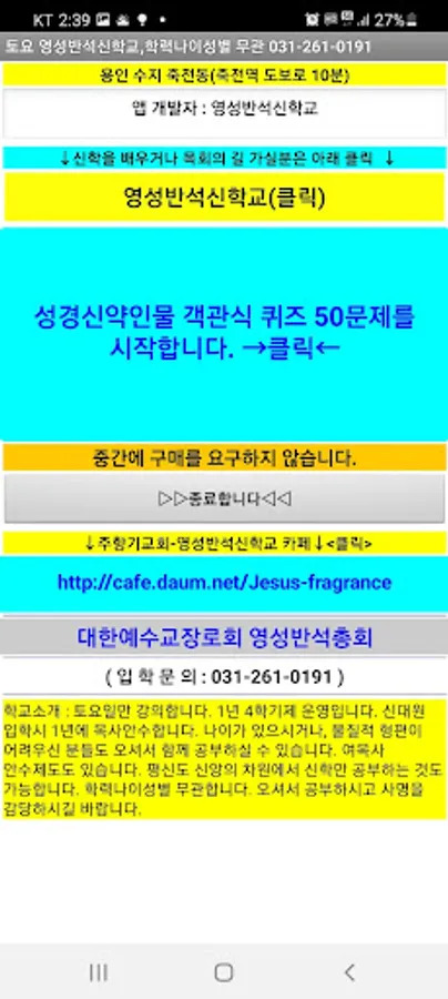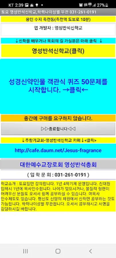 If you would like to enter the Youngseong Banseok Seminary, which lectures only on Saturdays, please contact us at 031-261-0191. Education, age and gender are all irrelevant.