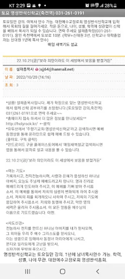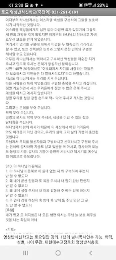 You can watch videos every day on YouTube 'Joohyanggi Church - Spirituality Banseok Seminary'.