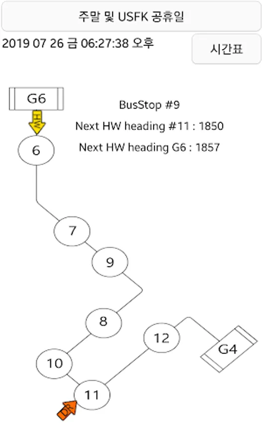 The next bus to Henry will turn into a red arrow. Please note that there is a bus that stops at the last stop slightly off the gate and skips a few stops.