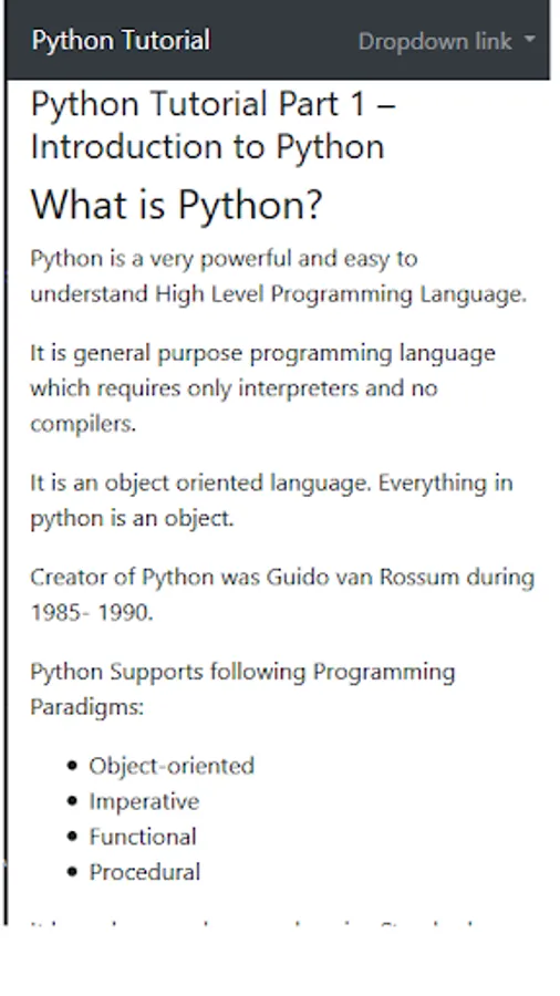 Our app contains all the chapters of Python Programming language. We have video and text material. Students can learn Python by using our app. You can ask questions as well.