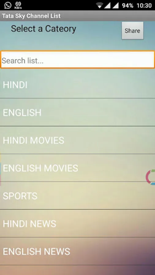 Tata Sky Channels List Screenshots