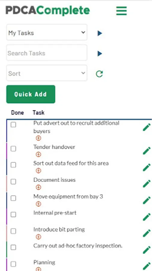 This is the Android app to support the mobile working of the PDCA Complete continuous improvement and business management platform.