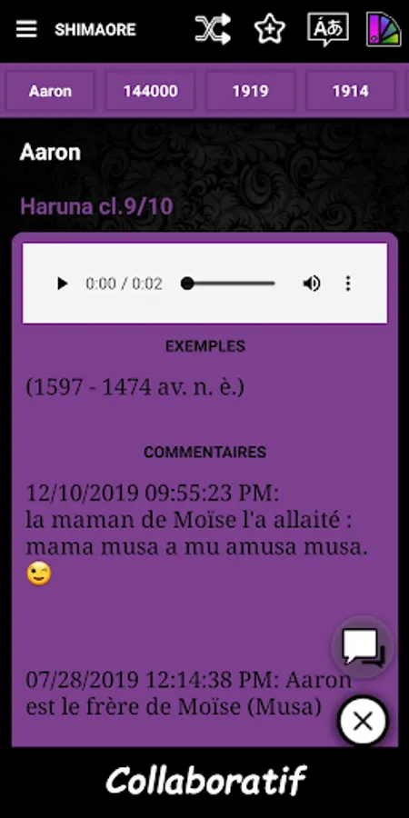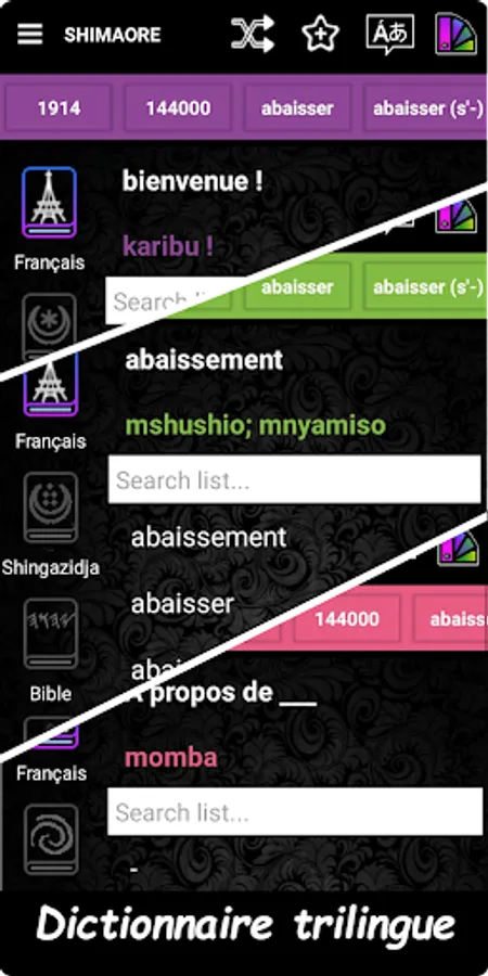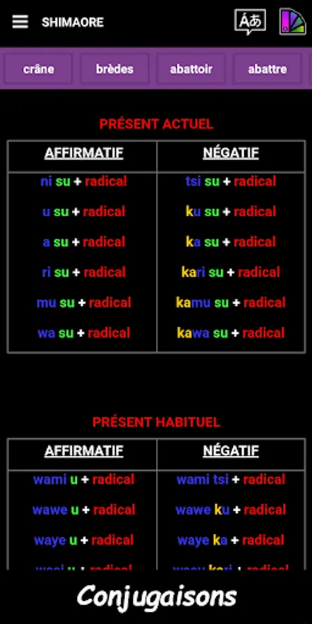 It also provides a table of word classes and a conjugation table, + a learning mode, a quiz, and the ability to compose a personal list.