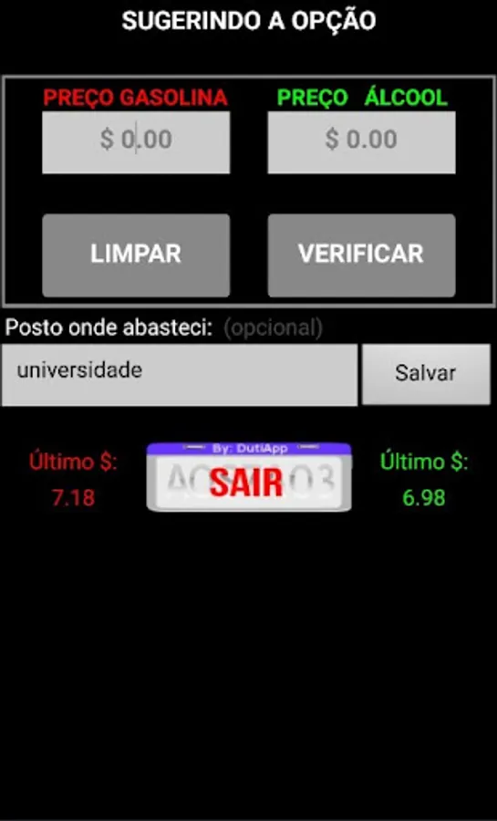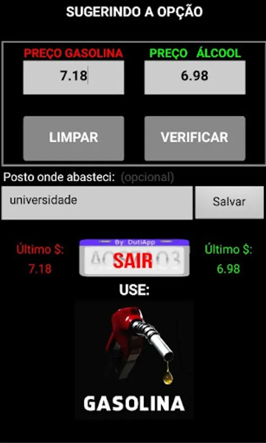 For the owner of dual-fuel vehicles (FLEX), the ABASTECER App will help you to choose the best cost-effective fuel, when you are going to fill up your vehicle, at the gas station of your choice/preference, taking into account the prices of these two fuels and, based on consumption studies and their percentage difference. It will calculate for you the best option at the time of refueling, in relation to prices between ALCOHOL and GASOLINE and currently, you will agree, that "we can't waste anything! even more so on fuel!" The application will remember the last values compared and the place where you filled up (if you want), so you don't get confused!